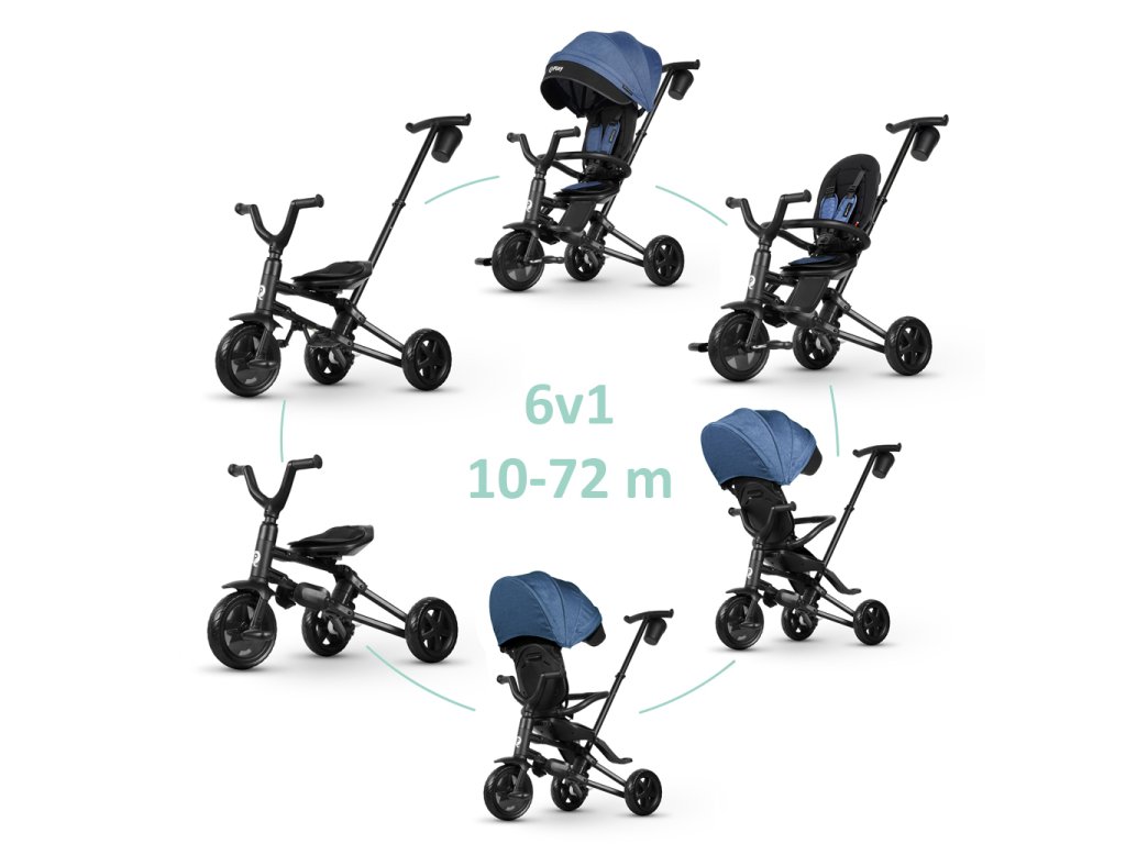 QPLAY Skládací Tříkolka Nova Niello Blue 6v1, věk 10-72 měsíců