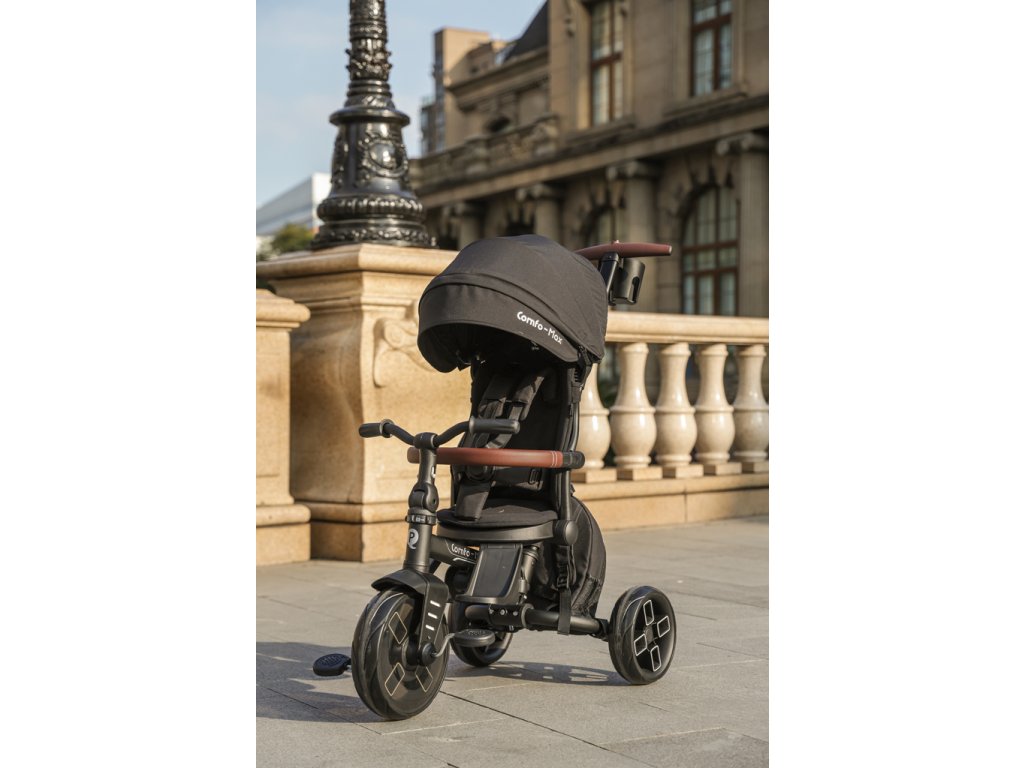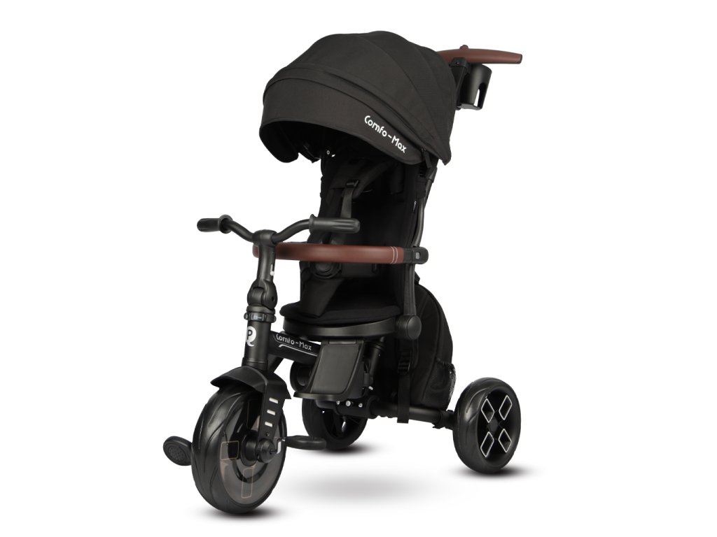QPLAY Tříkolka Comfo Max Black, 8 v 1, věk 10-72 měsíců