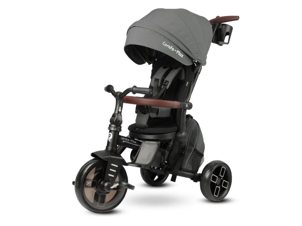 QPLAY Tříkolka Comfo Max Grey, 8 v 1, věk 10-72 měsíců