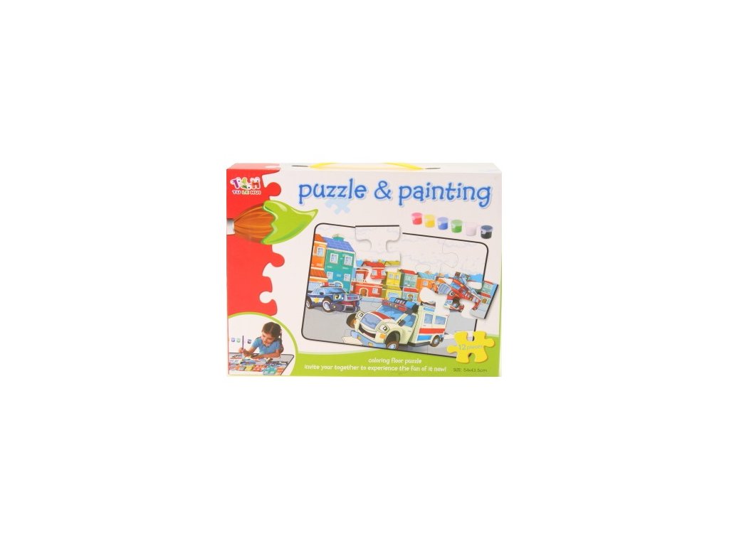 Obsahuje 12 velkých částí puzzlí, 6 barev a 2 štětce.