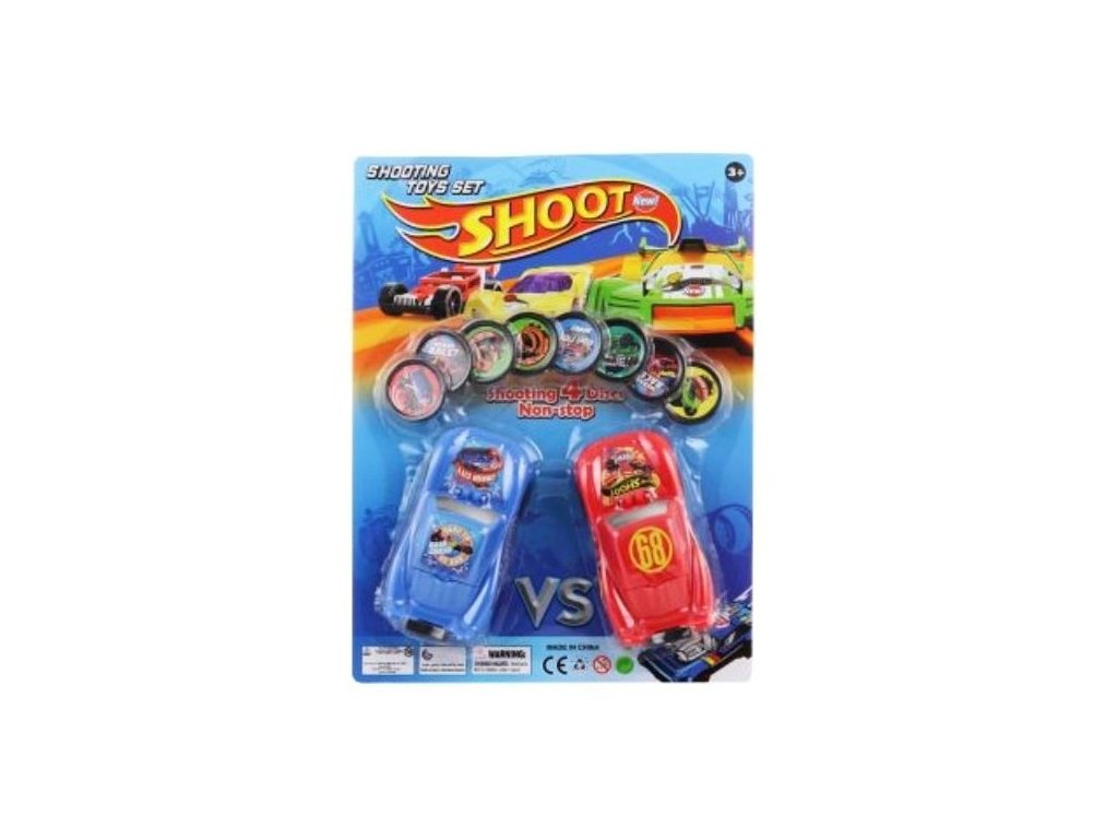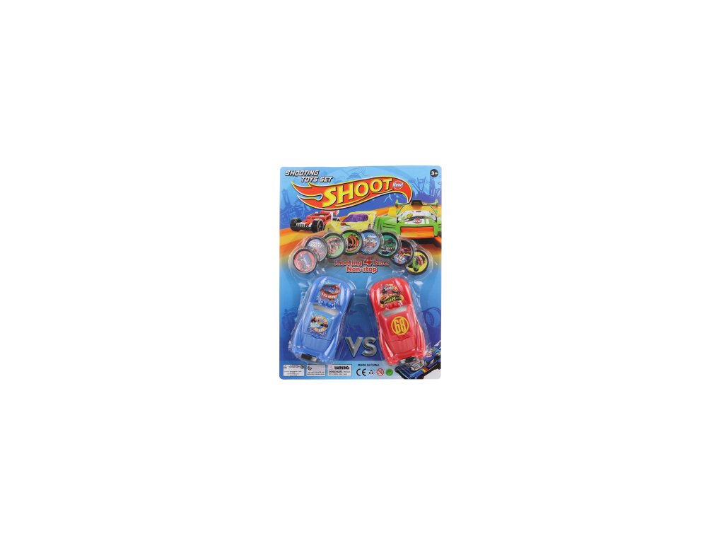 Sada 2 plastových vystřelovacích aut. Do auta se vloží žeton a po zmáčknutí zadní části auta žeton vystřelí.
