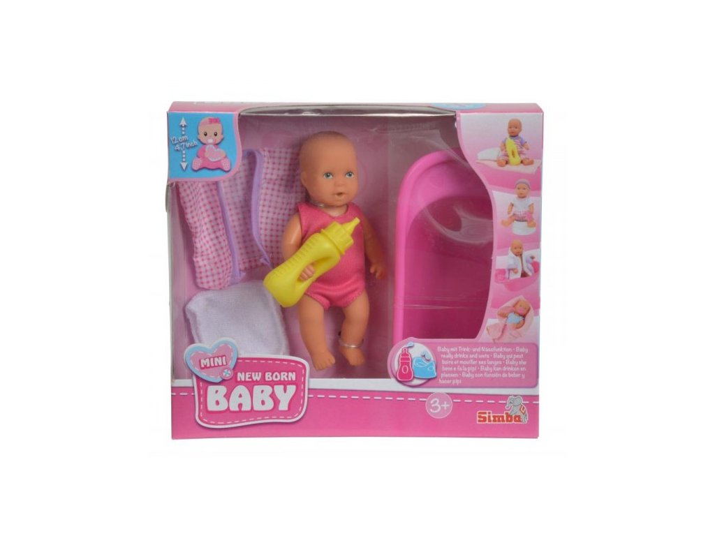 Panenka, která pije a čůrá s doplňky pro koupání. Set obsahuje: lahvičku a vaničku včetně ručníku a župánku. Výška panenky 12 cm.