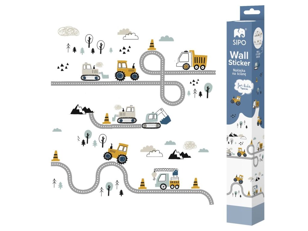 SIPO Nástěnné samolepky do dětského pokoje 100x80cm - Tractors on street