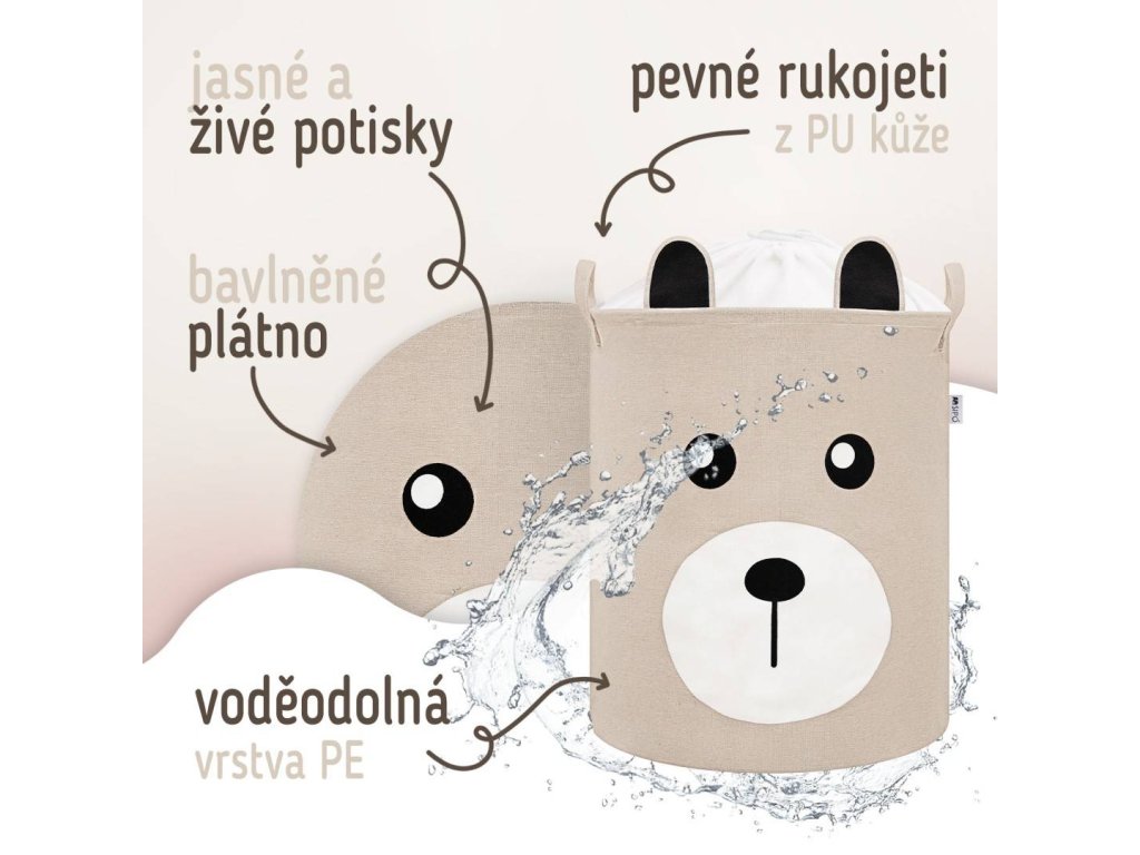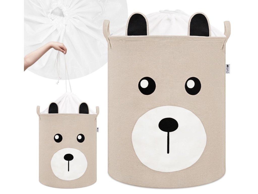 SIPO Skládací koš na hračky L 43 l se šňůrkou, bavlněný - BEAR Beige