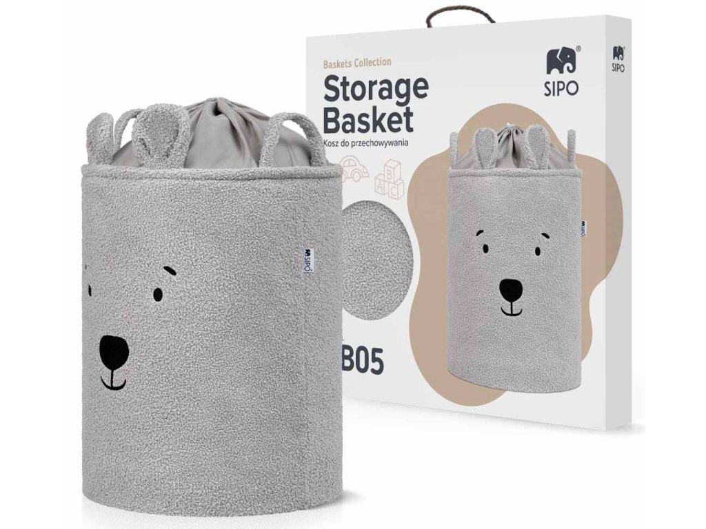 SIPO Koš na hračky L Premium Bouclé se šňůrkou 43 l - BEAR grey