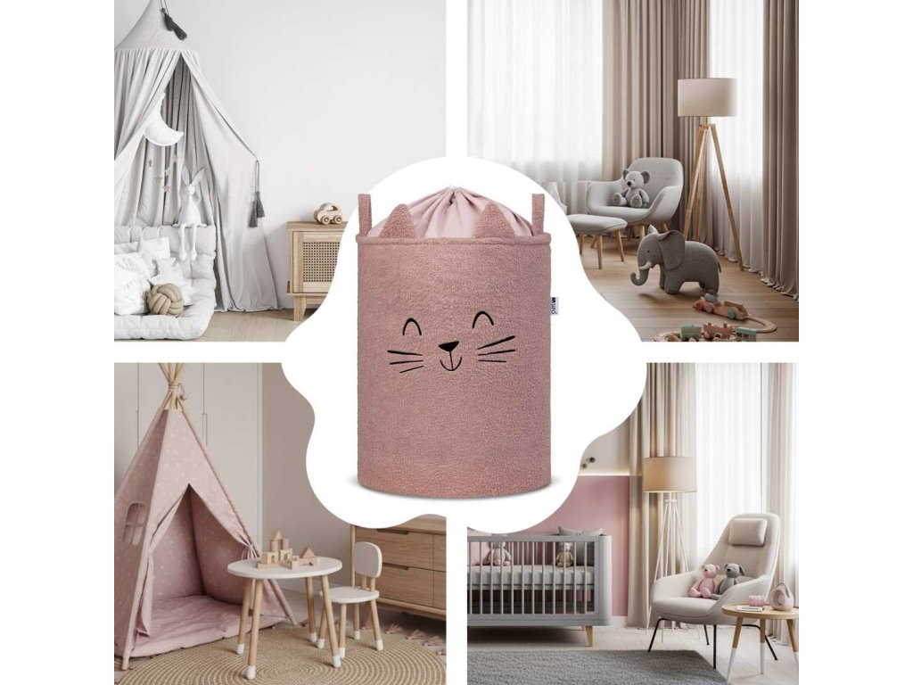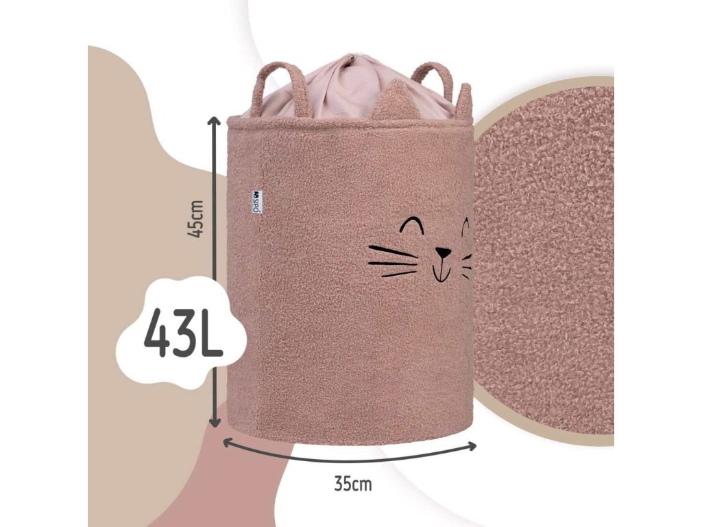 SIPO Koš na hračky L Premium Bouclé se šňůrkou 43 l - CAT pink