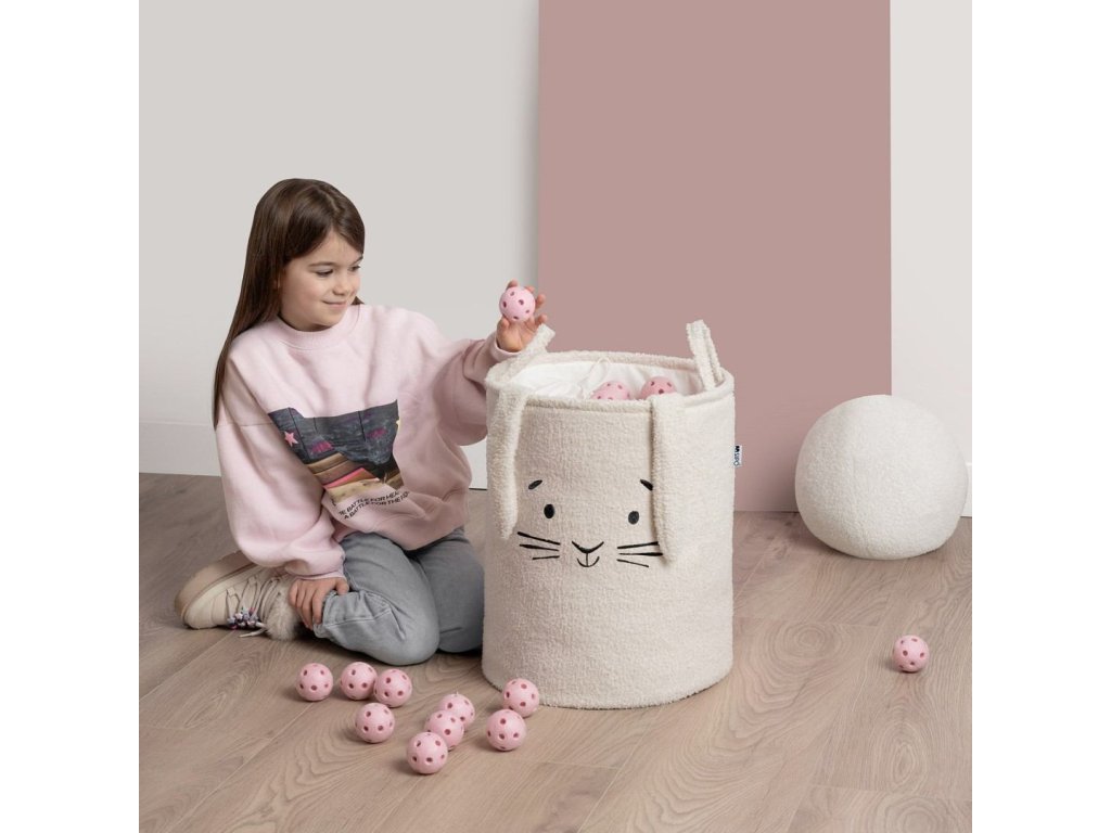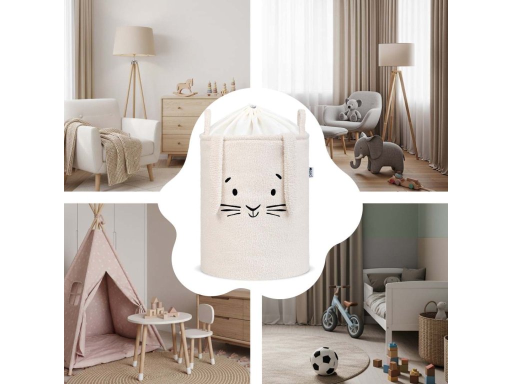 SIPO Koš na hračky L Premium Bouclé se šňůrkou 43 l - RABBIT creame