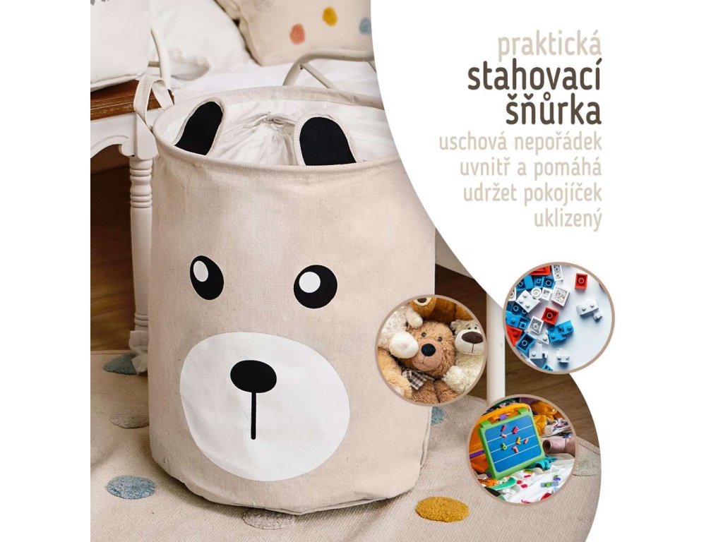 SIPO Skládací koš na hračky XL 63 l se šňůrkou, bavlněný - Rabbit beige