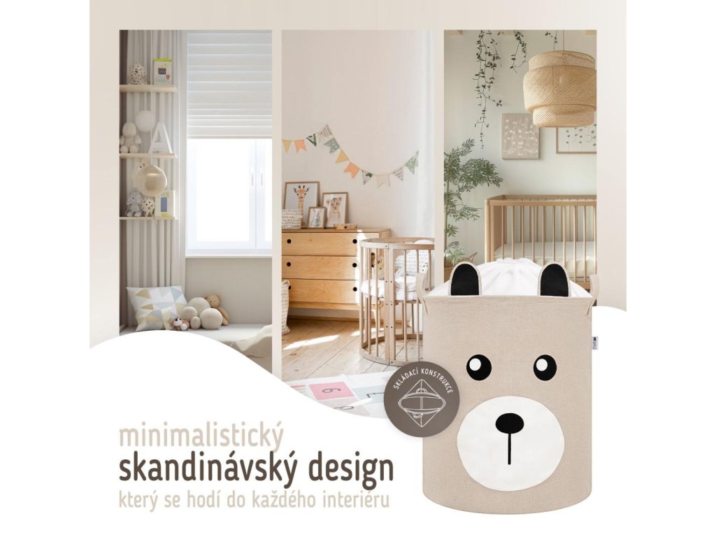 SIPO Skládací koš na hračky XL 63 l se šňůrkou, bavlněný - RABBIT beige