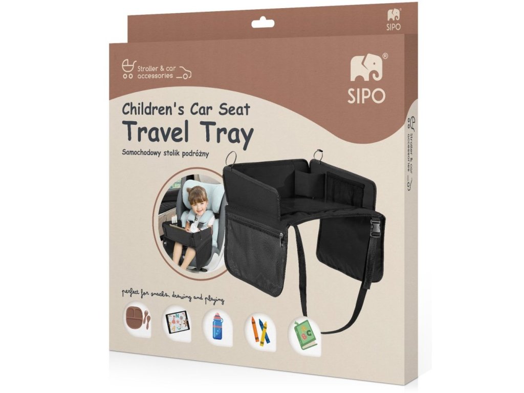 SIPO cestovní skládací stolek je kompaktní a praktické řešení určené k uspořádání prostoru kolem vašeho dítěte během cestování. Je vyroben z odolného polyesteru odolného proti skvrnám, snadno se čistí a je vysoce odolný proti každodennímu používání. Stolek má skládací pracovní plochu s funkcí suchého mazání, takže děti mohou kreslit fixami a poté je smazat, aniž by zanechaly stopy.