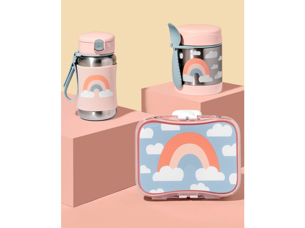 SKIP HOP Spark Style Láhev s brčkem na vodu nerez Duha 12m+