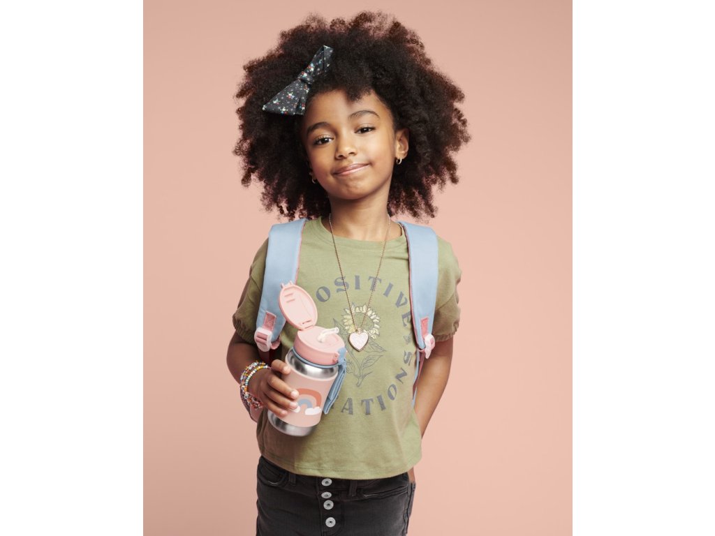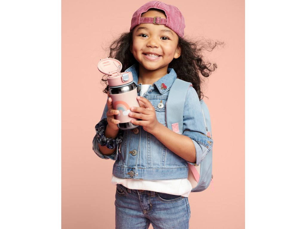 Láhev na vodu z nerezavějící oceli se skvělým designem, díky kterému mohou vyniknout malé osobnosti, pomáhá udržovat nápoje chladné i na cestách. Zavírací víko udržuje brčko čistou, zatímco protiskluzový silikonový návlek chrání malé ručičky před studenými povrchy. Obsahuje praktickou úchytku na suchý zip. Nakombinujte si produkty ve stejném designu z celé kolekce Spark Style.