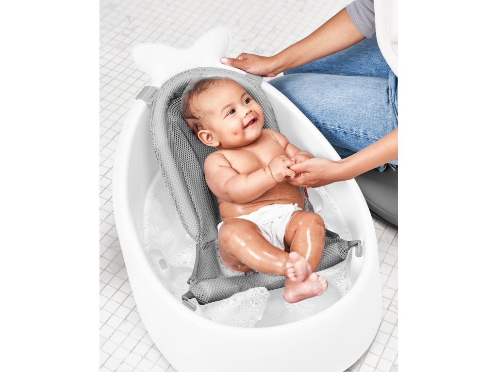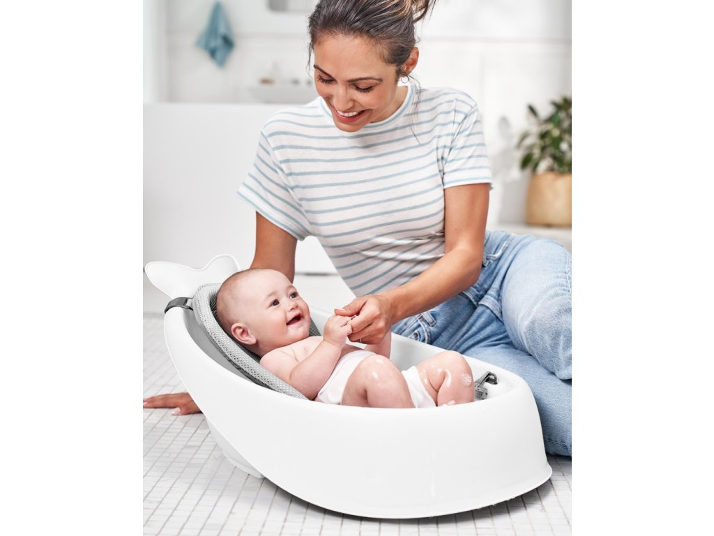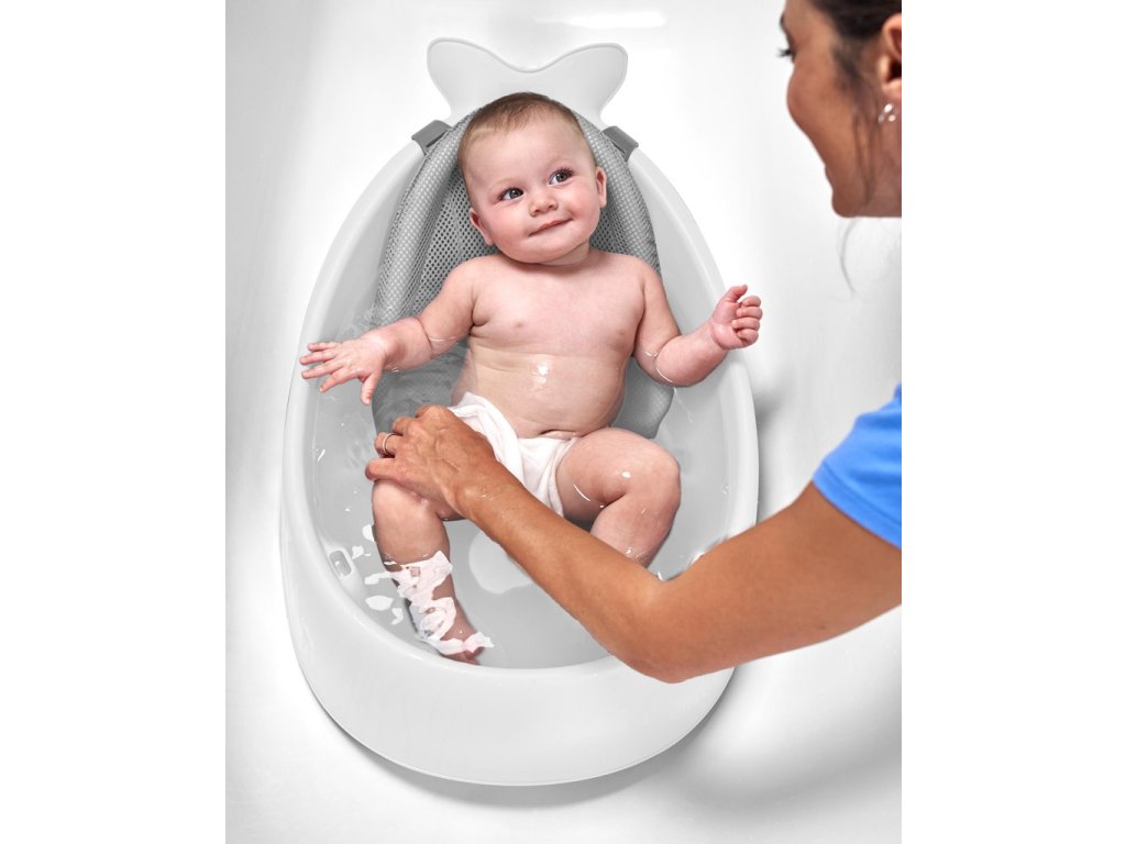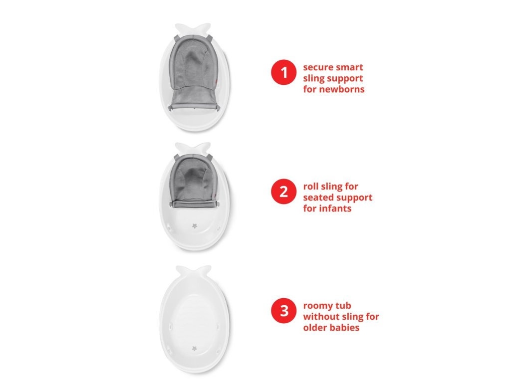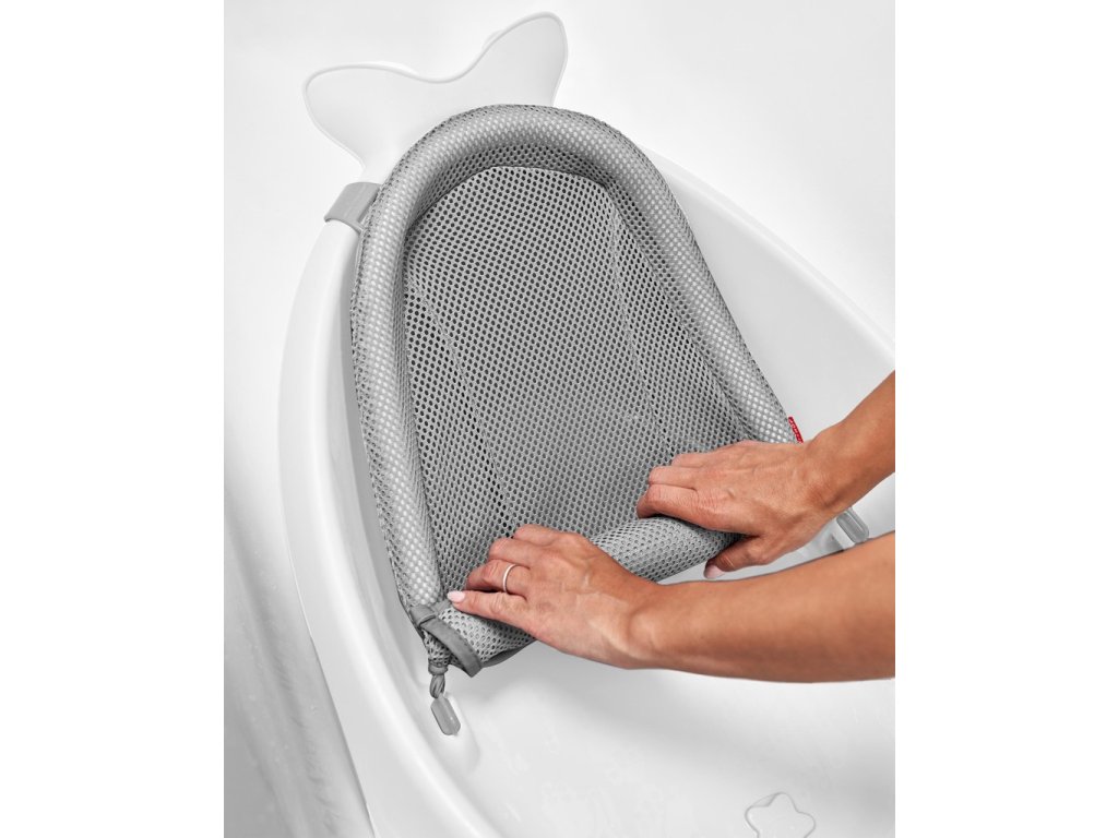 Vanička Moby bude jedinou vaničkou, kterou budete potřebovat! Díky nastavení do třech poloh roste spolu s vašimi dětmi. Podložka se zajišťuje do dvou ergonomických poloh: vyšší pro celoplošnou podpěru a nižší pro oporu při sezení. Dvouvrstvá síťovina a krajní konstrukce bezpečně a pohodlně drží děťátko. Jak se děťátko naučí sedět, popruh lze odstranit a koupání se může stát zábavou v prostorné vaničce plné pohodlí bez nepříjemných výběžků.