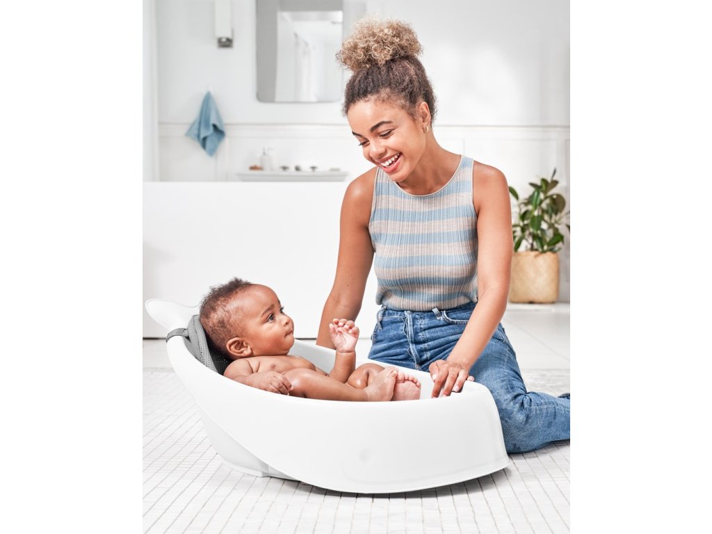 SKIP HOP Vanička s ergonomickou podložkou Moby 3 fázová bílá