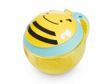 Chytrý nápad na cesty. Kalíšek má víčko, které po otevření drží, před vysypáním obsahu jej chrání pružné lamely, které pustí dětskou ručičku dovnitř, ale nepustí svačinku ven. Kalíšek je průhledný, aby se mohl zavčasu doplnit. Na boku je praktické ouško v dětském rozměru, pomocí kterého lze kalíšek připevnit i na kočárek či tašku. 0 % BPA, 0 % PVC, bez ftalátů. Obsah: 222 ml. Průměr: 10 cm