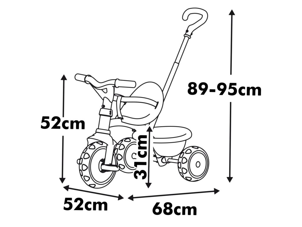 Jízda na dětské tříkolce dětem přinese dlouhé hodiny zábavy a nových dobrodružství, ale přispívá také k všestrannému vývoji. Děti si díky ní posilují svalstvo na nohou a rukou, zlepšují své reflexy, učí se odhadovat vzdálenosti a přizpůsobovat rychlost v závislosti na okolních podmínkách. Jemný vzhled a design tříkolky podněcuje v dětech fantazii a kreativitu. Tříkolka má rozměry 68*52*52 cm, přičemž sedátko je ve výšce 31 cm. Celková nosnost představuje až 30 kg. Pedály tříkolky jsou protiskluzové.