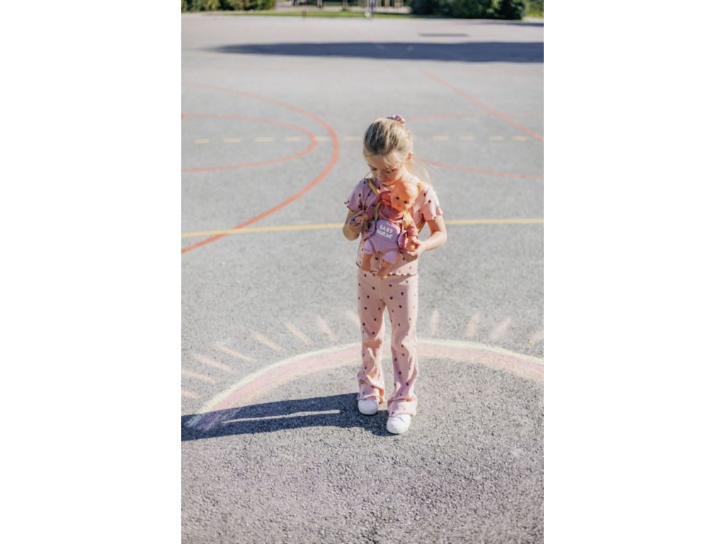 V tomto praktickém nosítku sedí panenka bezpečně a pohodlně. 2 možnosti nošení panenky - otočená čelem směrem ven nebo čelem k holčičce. Délkově nastavitelné ramenní popruhy zajišťují maximální pohodlí jako u skutečného nosítka. Vhodné pro všechny panenky do 42 cm (panenka není součástí balení).