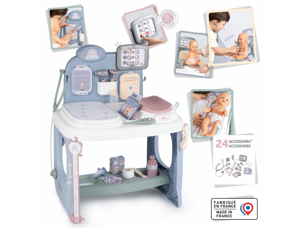 Baby Care centrum umožňuje dětem hrát si na dětského lékaře, vyšetřovat a léčit drobné bolístky jejich panenek, vhodné pro panenky do 38 cm.