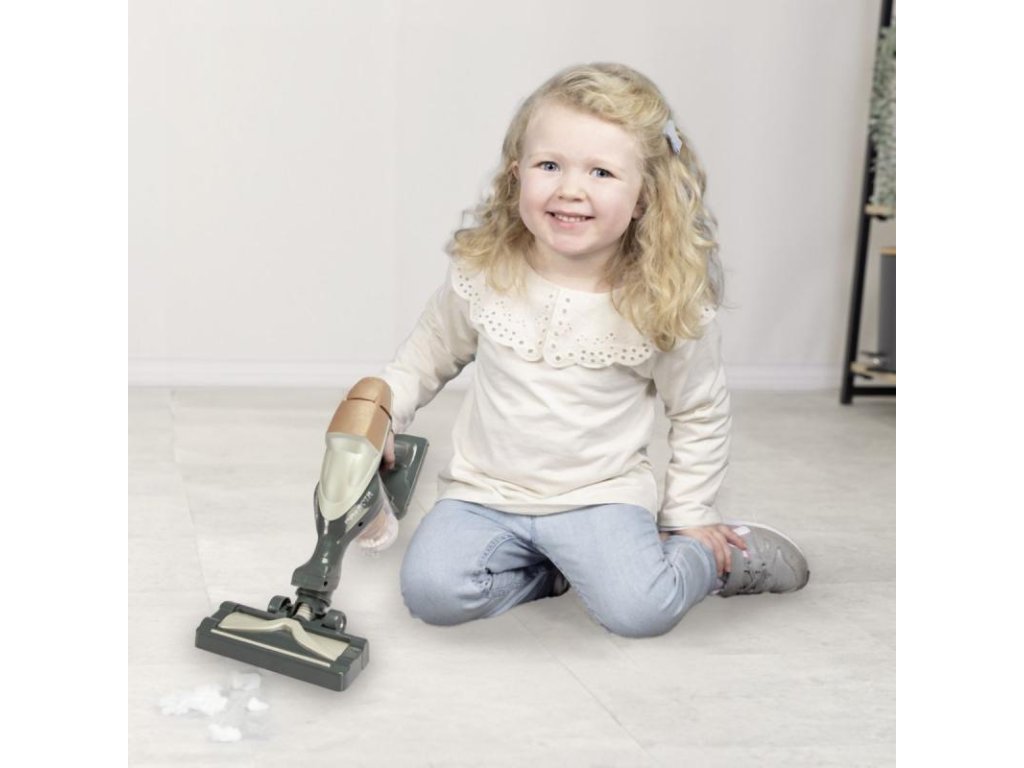 Vysavač je pouze replika skutečného vysavače, děti si s ním zahrají na dospělé a hravou formou získávají pocit zodpovědnosti a správné návyky při úklidu. Učí se zodpovědnosti, přibližují se světu dospělých a zlepšují si své motorické a pohybové dovednosti. Hra s vysavačem je maximálně bezpečná, při jeho výrobě se použily kvalitní a odolné plasty s oblými hranami. Celková délka tyčového vysavače je 80 cm, dítě si může jeho délku upravit na klasický ruční vysavač. Elektronický modul se napájí 3 bateriemi typu 1,5V LR6, které nejsou součástí balení.