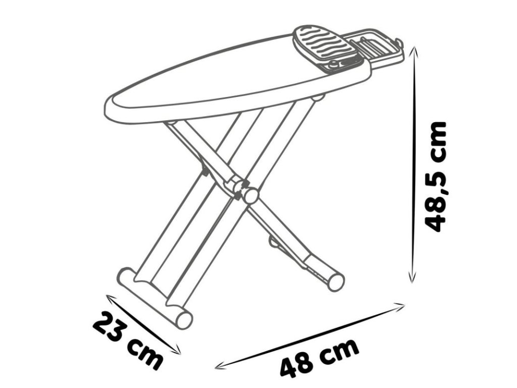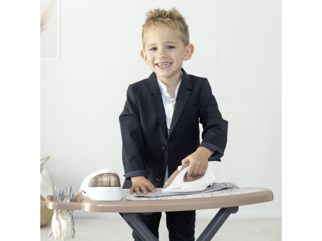 Žehlicí prkno se žehličkou Tefal Ironing Board představuje vynikající sadu pomůcek pro žehlení pro malé pomocnice v domácnosti od 3 let. Prkno na žehlení upoutá dítě na první pohled, vypadá opravdu realisticky. Má pevnou konstrukci a lze ho snadno složit. Je vyhotoveno v elegantním barevném provedení, takže ozdobí každý dětský pokojíček. Povrch žehlicího prkna je ozdoben originálním motivem, díky čemuž bude žehlení pro děti mnohem zábavnější a radostnější. Rozměry žehlicího prkna pro děti jsou 69*23*49 cm, výška plochy na žehlení je 49 cm. Žehlicí prkno má také podstavec na položení žehličky, který se podobná parní nádobě.