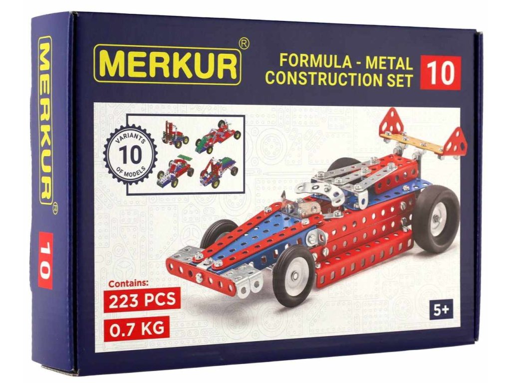 Ze stavebnice Merkur 010 Formule je možné dle návodu sestavit 10 různých modelů. Malý konstruktéři mohou sestavit i model dle svých představ, fantazii se meze nekladou. Vhodné i pro děti, které s Merkurem začínají. Se sestavenými modely si lze hrát, jsou velmi odolné.