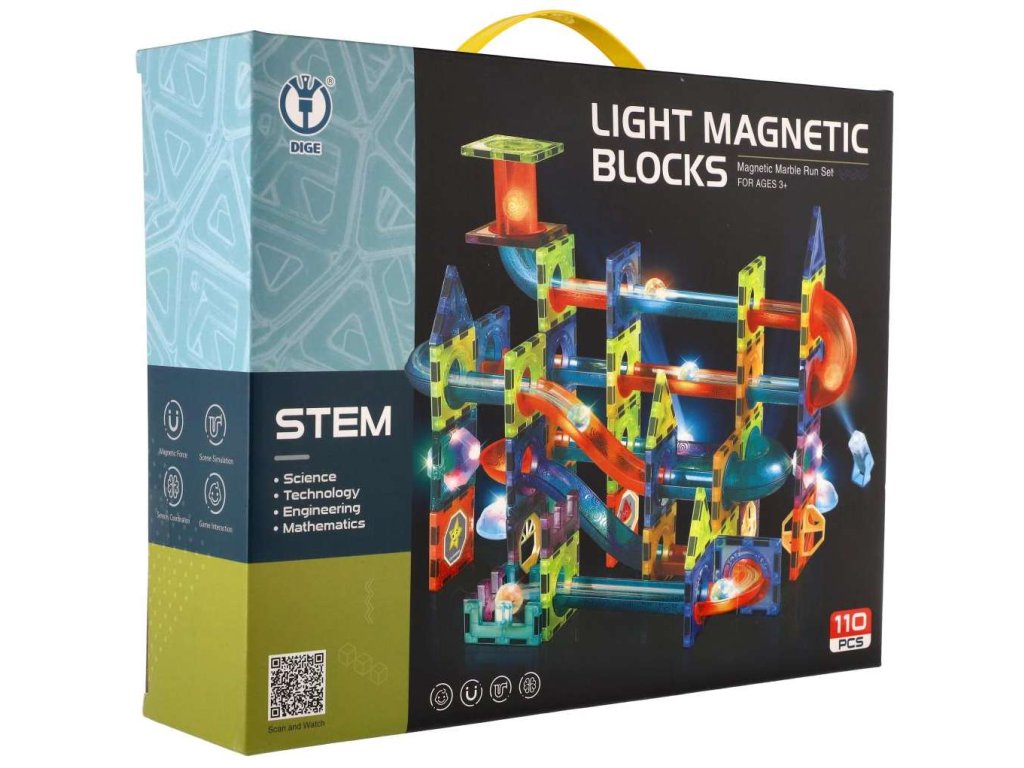 STEM Kuličková dráha magnetická stavebnice 110 kusů, 16 kuliček + doplňky na baterie
