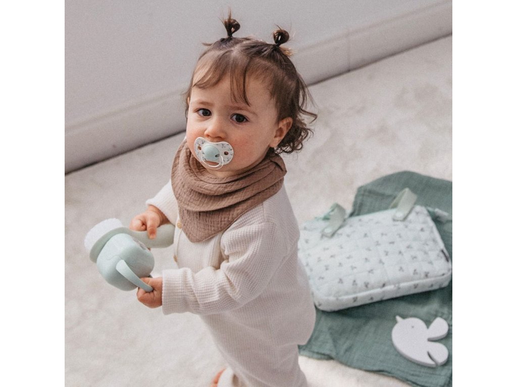 Je velkým pomocníkem pro klid vás i vašeho miminka, ať již při spánku nebo na vycházce. Je dokázáno, že sání dudlíku uvolňuje endorfin, takzvaný hormon štěstí, který přináší dítěti příjemný konejšivý pocit. Dopřejte dítěti dudlík místo prstů či pěstičky, protože tento způsob uklidňování může velmi porušit budoucí dentální vývoj. Veškeré savičky i dudlíky jsou podpořené a vyráběné ve spolupráci s Asociací španělských dětských ortodontistů a respektují přirozený vývoj dásní, zubů i patra dítěte.