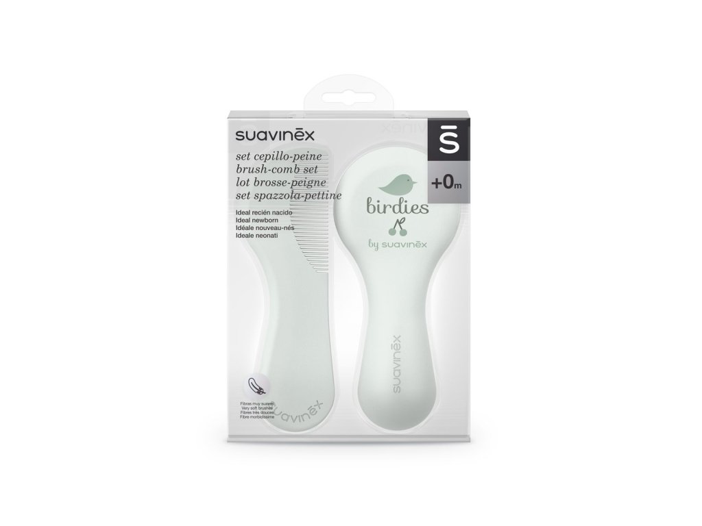 SUAVINEX | SET Hřebínek/kartáček BIRDIES - zelený