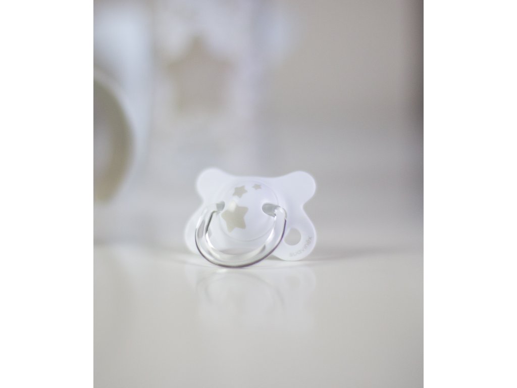 Dudlík svým inovativním tvarem motýlka souzní s drobným obličejem miminka, přičemž přichází do minimálního kontaktu s jeho jemnou a citlivou pokožkou.