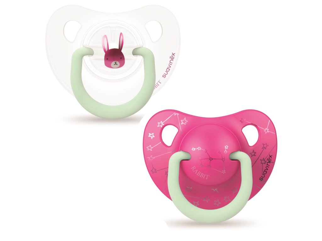 SUAVINEX Šidítko DEN & NOC anatomické silikon 0-6m, 2 kusy - Králík růžové