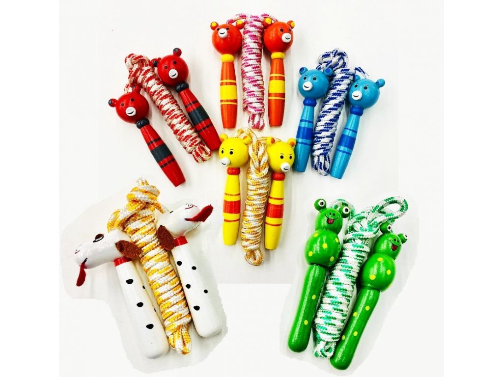 Švihadlo 2 m dřevěné barevné s úchytkami zvířátek.