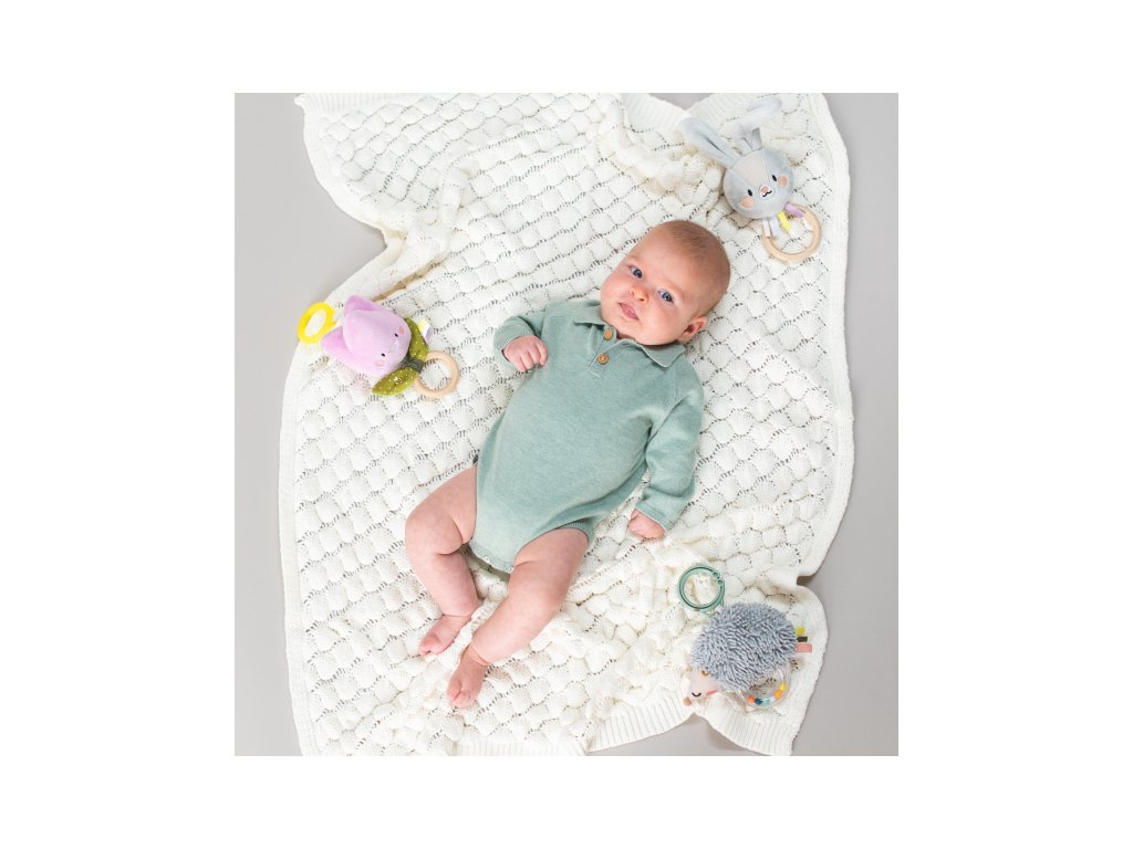 Různé tvary a povrchy hračky podněcují dítě ke zkoumání rukama i ústy a pomáhají rozvíjet jemnou motoriku a smysly dítěte.