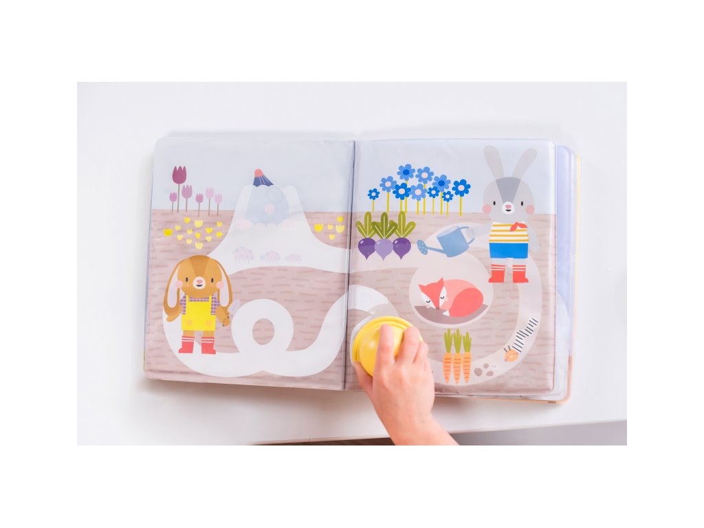 Objevte kouzelnou knížku, ve které se obrázky probouzejí k životu vodou! Po namočení vodou se na bílých plochách na stránkách knížky začnou objevovat obrázky, které zaujmou vaše zvídavé batole. Knížka je ideální pro vyprávění a společné hledání schovaných příběhů ze života zvířátek.