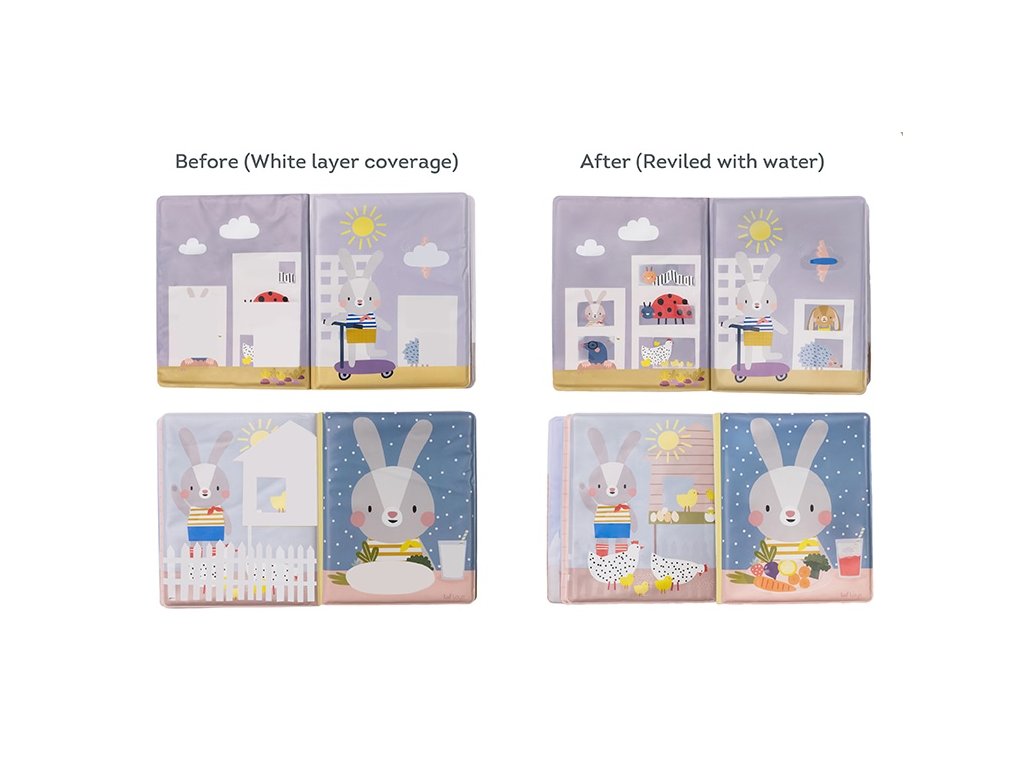 Knížka je vyrobená z odolného, voděodolného materiálu a je zcela netoxická – bez BPA, olova, ftalátů i rtuti.