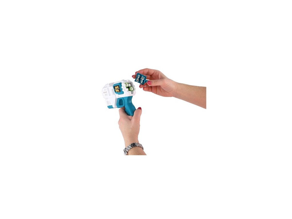 Zapomeňte na náročné foukání, stačí připevnit náplň do bublifuku, která je součástí balení. Stisknutím spouště tvoříte krásné a barevné bubliny.