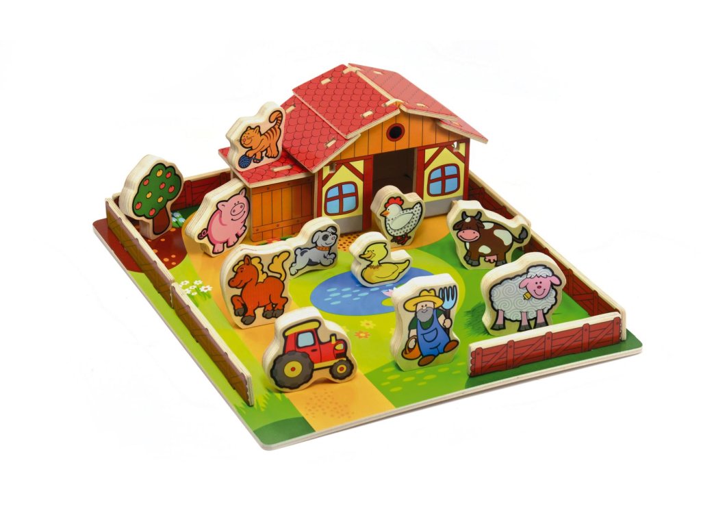 Domeček dřevěná farma Moje první zvířátka 31x31cm 28ks+podložka