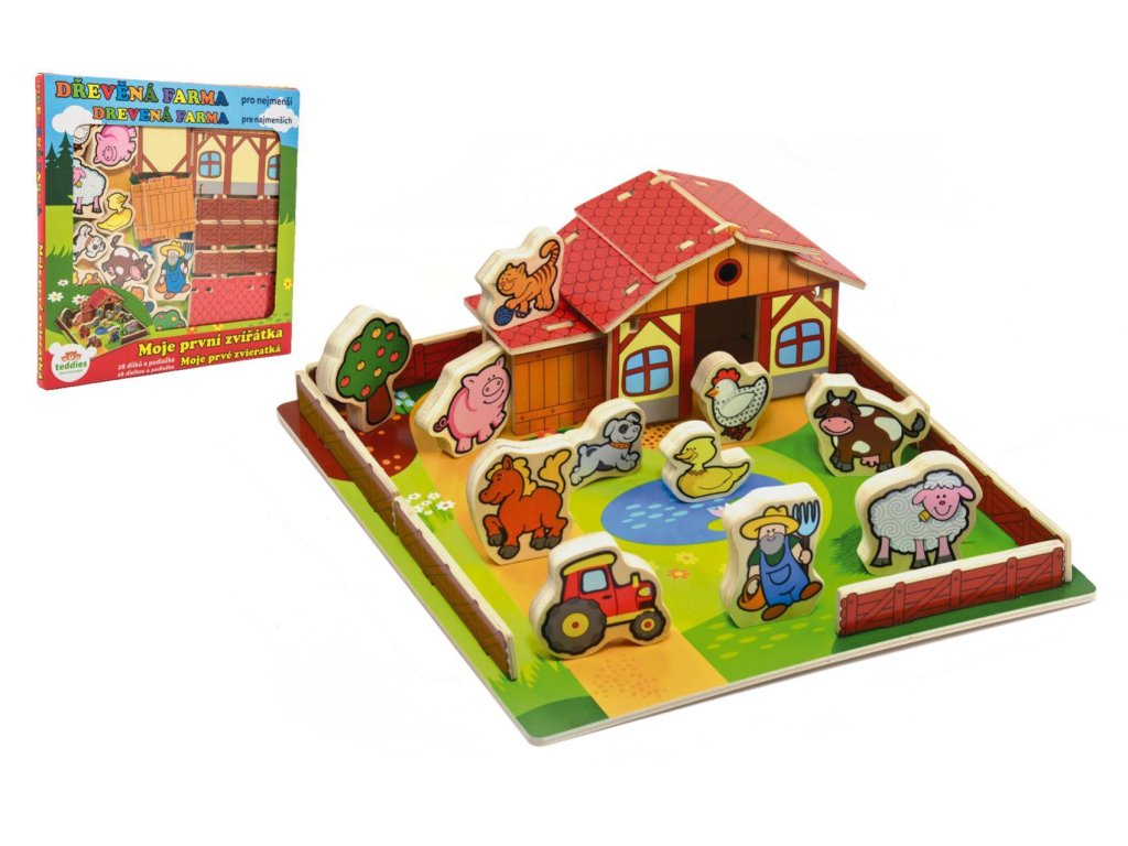 Teddies Domeček dřevěná farma Moje první zvířátka 31x31cm 28ks+podložka v krabici