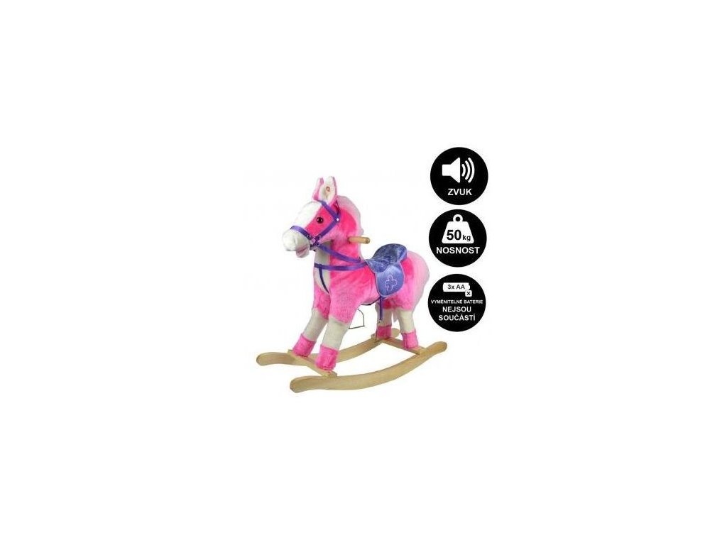 Teddies Kůň houpací růžový plyšový 71cm se zvukem a pohybem, nosnost 50kg
