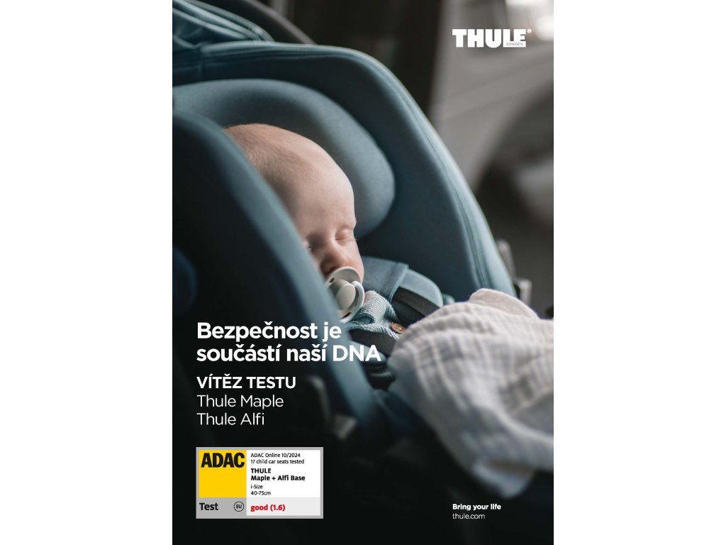 - Instalace do vozidla: základna autosedačky Thule Alfi se systémem ISOFIX, uchycení řemenem