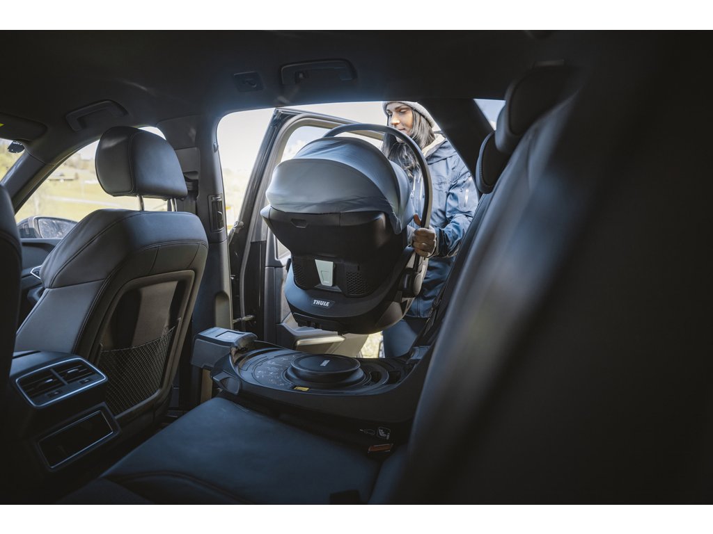 Díky intuitivní technologii EasyDock je instalace kojenecké autosedačky Thule Maple na základnu Thule Alfi ISOFIX úplně jednoduchá. Stačí nasadit sedačku na základnu, otočením ji zafixovat do režimu pro jízdu a je hotovo. Centrální digitální displej vám jednoznačně potvrdí, že je sedačka řádně a bezpečně nainstalovaná. Pokud používáte kojeneckou autosedačku se základnou Thule Alfi ISOFIX, lze ji pohodlně otáčet až o 180 stupňů pro snadnou manipulaci s dítětem při nástupu i výstupu. (Základna k dokoupení samostatně)