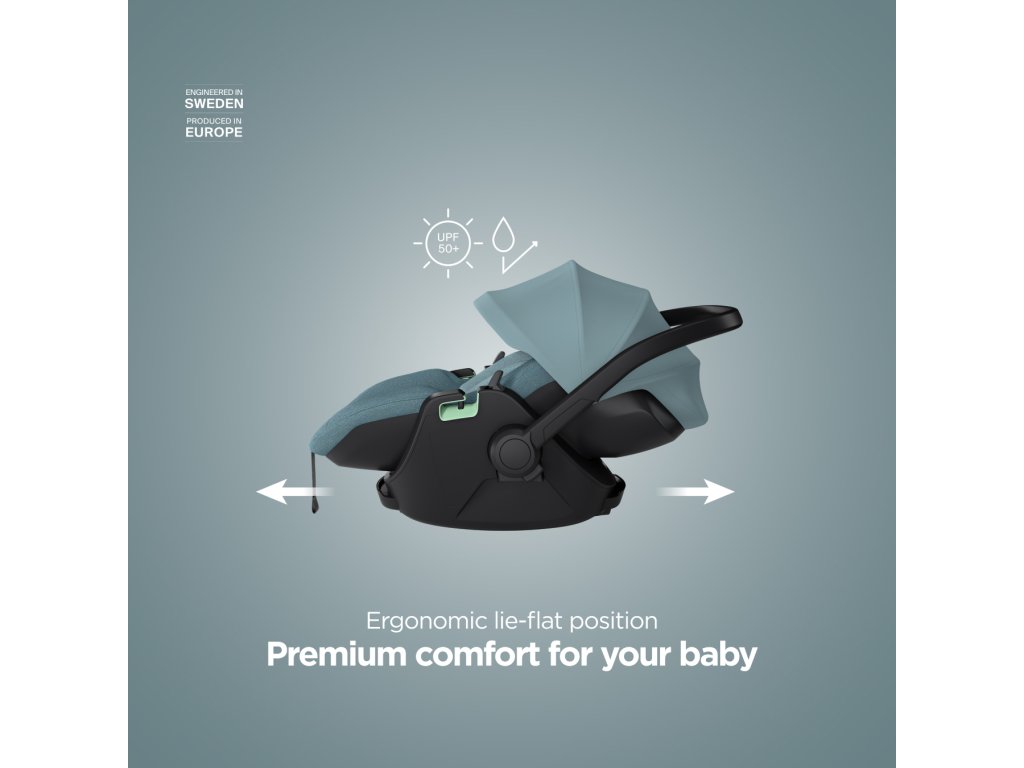 Lze snadno přepínat mezi komfortní polohou vleže pro použití na kočárku a vzpřímenou bezpečnostní polohou v autě. Plynulé přechody mezi polohami přispívají k tomu, aby dítě zůstalo v pohodlí