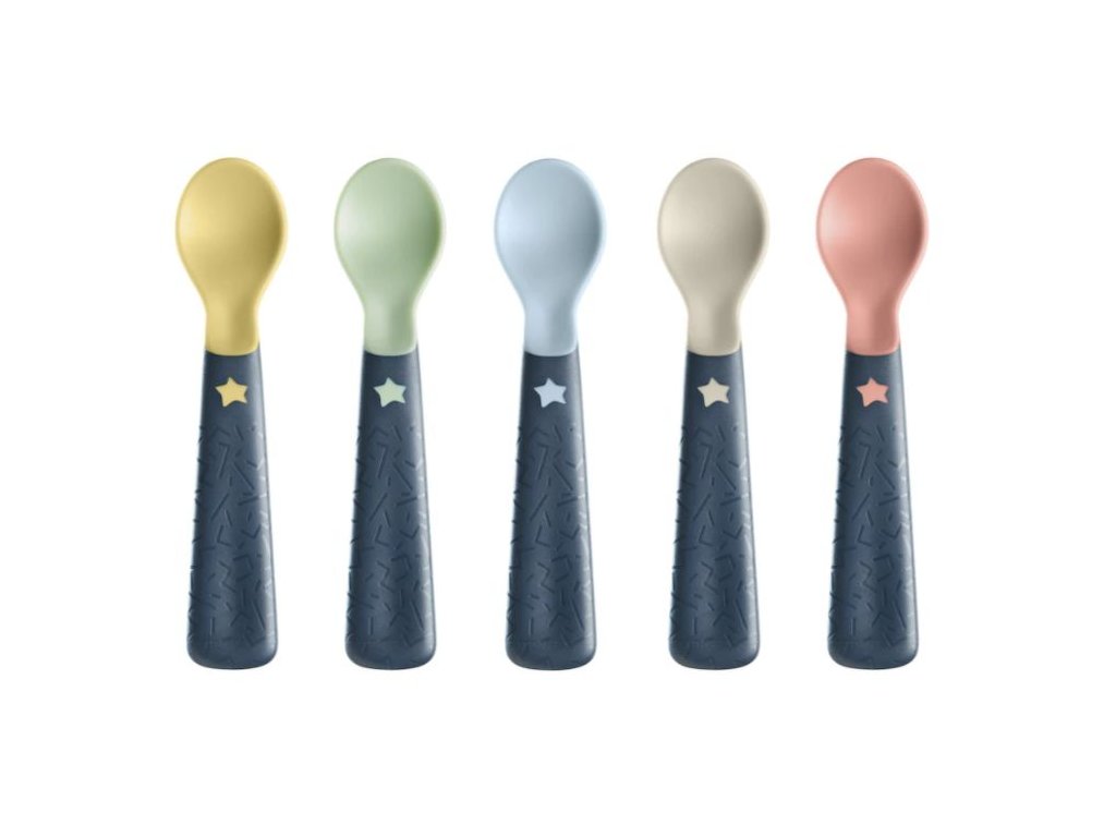 Lžičky s tvarem pro snadné uchopení jsou určeny pro krmení miminek od 6 měsíců. Jejich široký a mělký tvar je ideální pro první příkrmy, měkké zakončení lžičky je maximálně šetrné k citlivým dásním dítěte. Tvar rukojeti je vhodný i pro uchopení dětskými ručičkami při prvních pokusech o samostatné krmení. Materiál odolá kousání i pádům lžičky na zem.