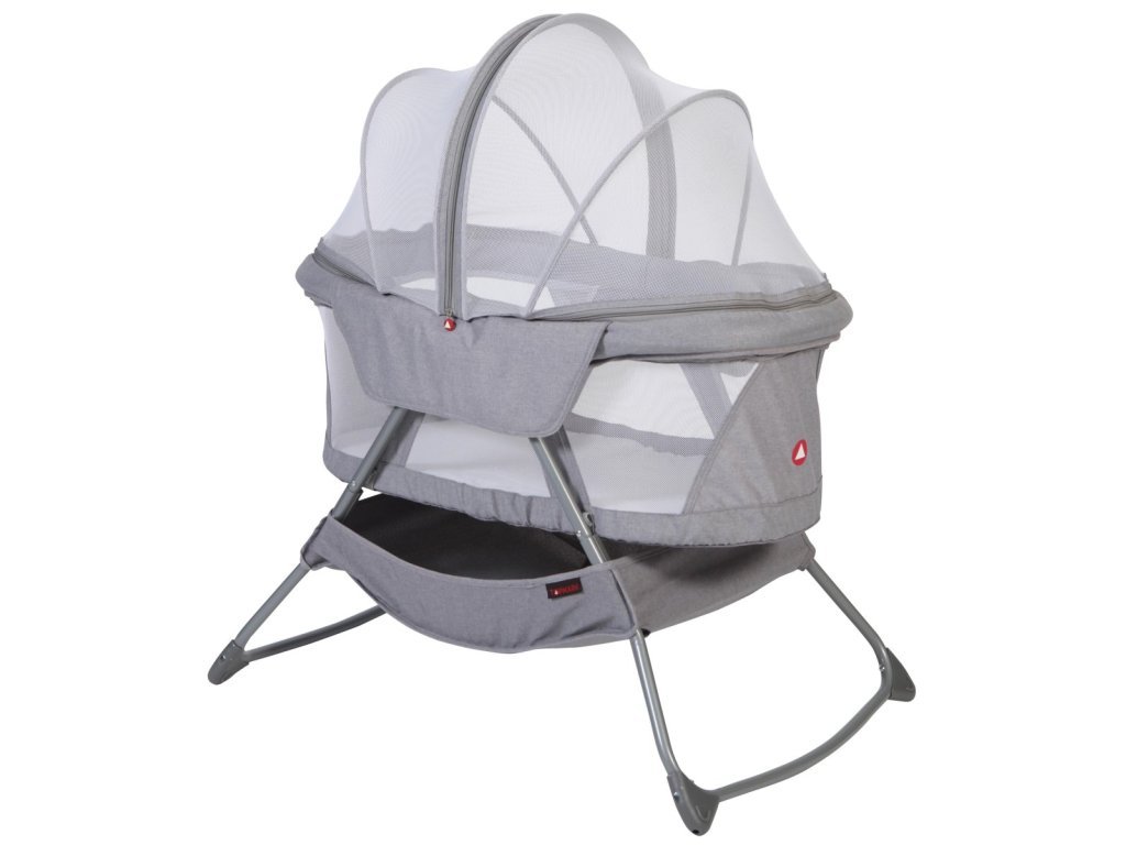 Cestovní mini postýlka, kterou lze snadno přestavět na kolébku,pouze pomocí otoční plastových nohou. Kolíbka je vhodná již od narození, dokud dítě není schopno samo sedět tj. cca 6 měsíců. Součástí balení jsou nebesa-moskytiéra, matrace s prostěradlem, cestovní taška a koš na potřeby.