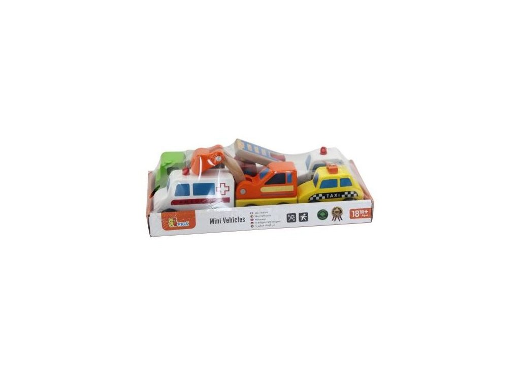 VIGA Dřevěná dopravní autíčka 6ks, 18m+