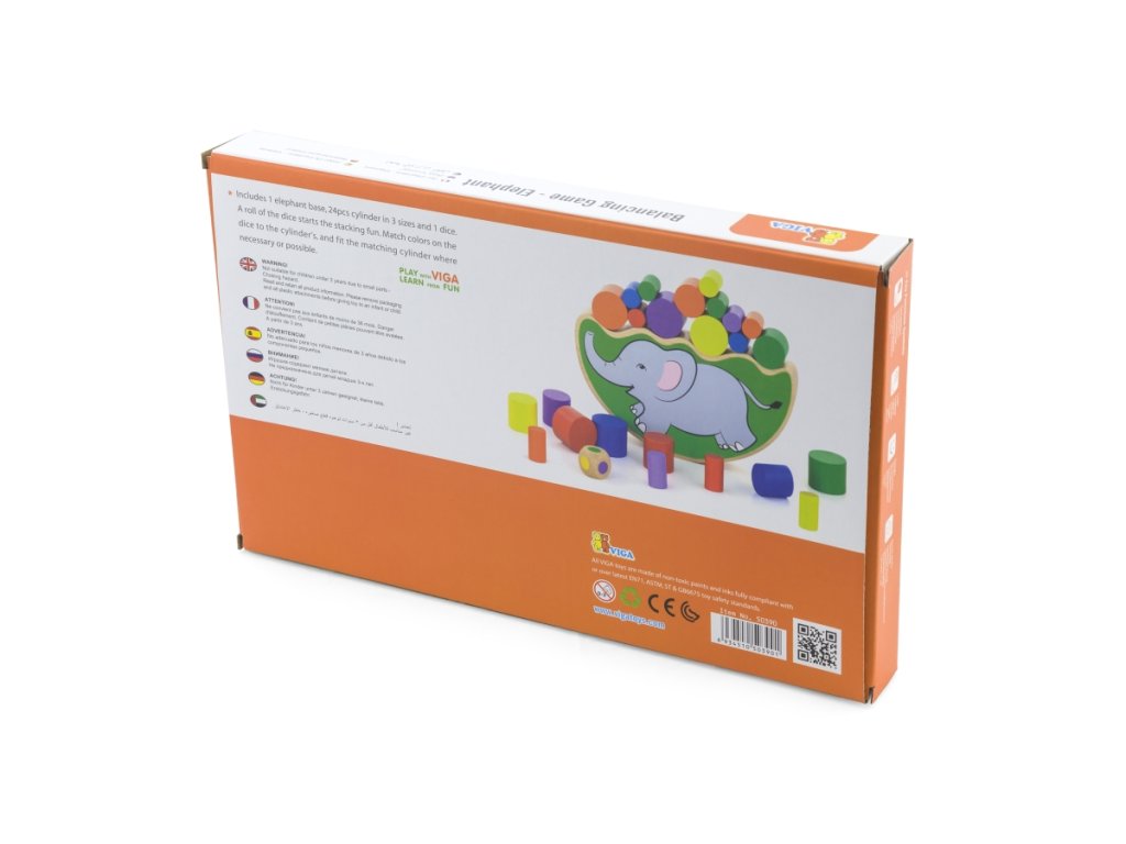 Dřevěná hra, která procvičí dětský postřeh a motoriku. Hráči hází kostkou a podle barvy, která padne musí vytáhnout válec stejné barvy, tak aby ostatní válce nespadly. Rozměry balení cca 31 x 20 x 3 cm.