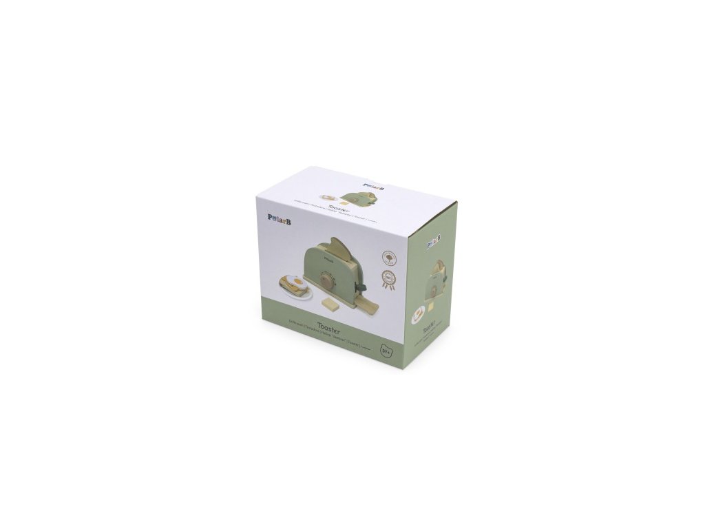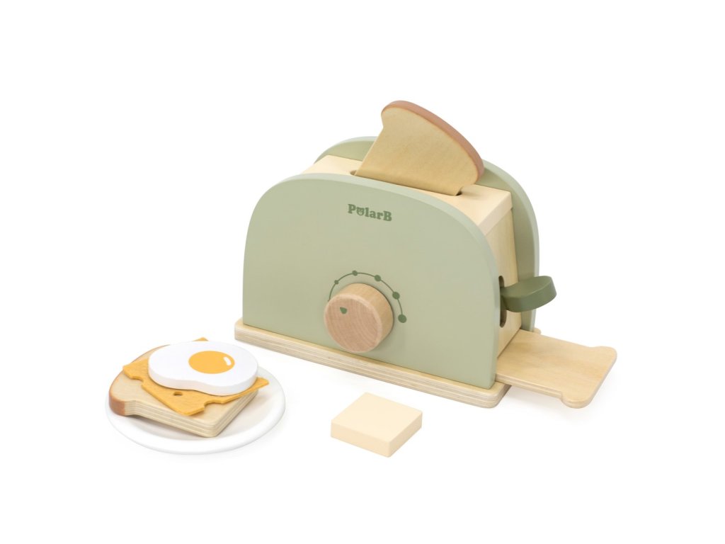 Co takhle si udělat k snídani tousty? Vložte do něj toustový chléb a otočte knoflíkem - tím nastavíte dobu opékání. Když je toast hotový, stiskněte páčku a vyskočí z topinkovače. Nejchutnější tousty jsou ty, které se podávají s máslem. Položte je na přiložený talířek a podávejte s máslem. Dobrou chuť! Tento dřevěný toustovač potěší každé dítě. Balení obsahuje toustovač, plátek sýra, toast, vajíčko a talířek.
