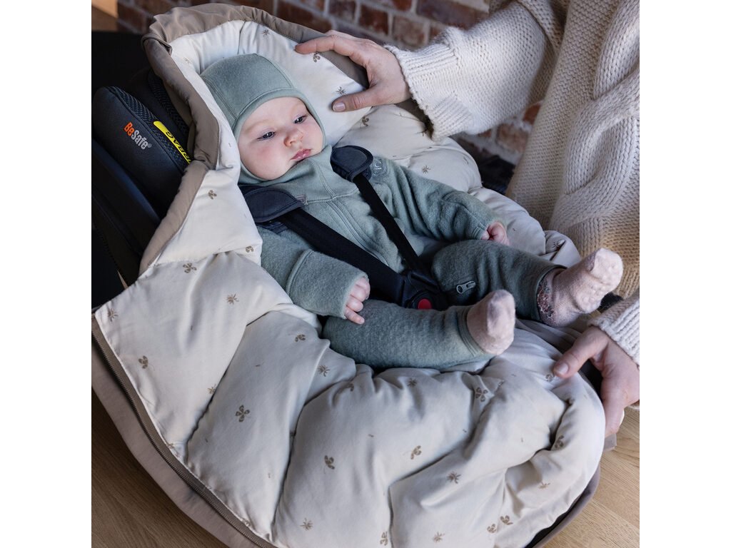 Lze jej používat od narození až do 1,5 roku. Je ideální pro dlouhé i krátké cesty a je navržen tak, aby se vaše dítě v autě cítilo bezpečně, v teple a pohodlí. Lze jej také použít jako spací pytel a má přední zip pro snadný přístup k dítěti.