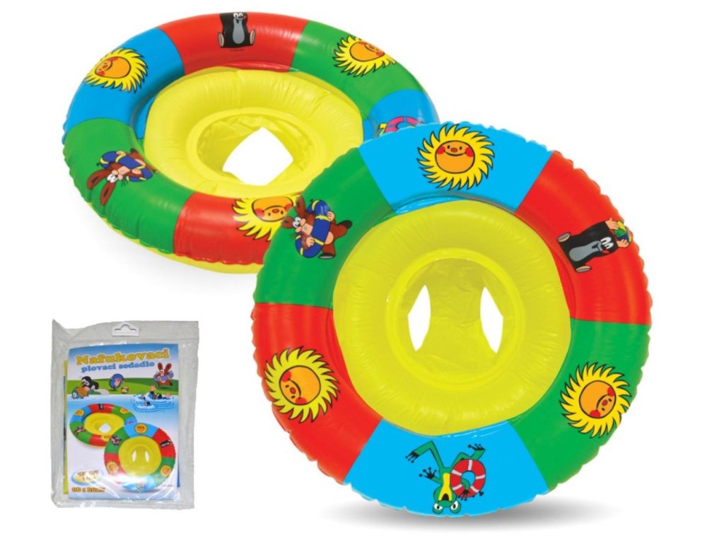 Plovací sedátko (kruh) do vody, malý kruh uvnitř kruhu velkého, pro extra stabilitu. Dvě vzduchové komory. Baby kruh Krtek pro nejmenší nafukovací 68cm v sáčku.
