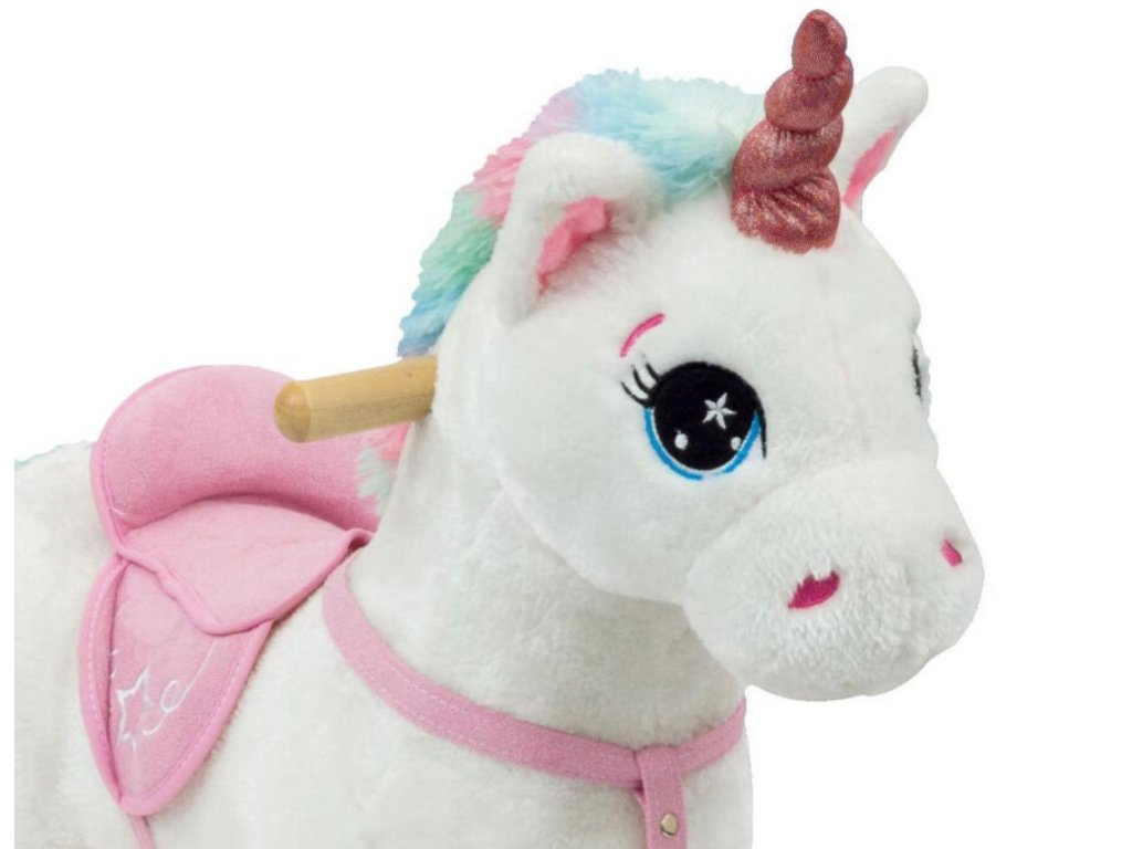 Roztomilý houpací jednorožec potěší všechny malé slečny, které toto zvířátko milují! Díky sedlu bude sezení na poníkovi pohodlné a o příjemnou zábavu se postarají zvukové efekty.