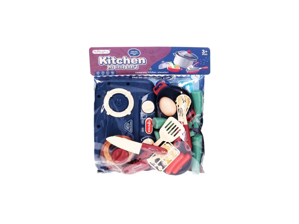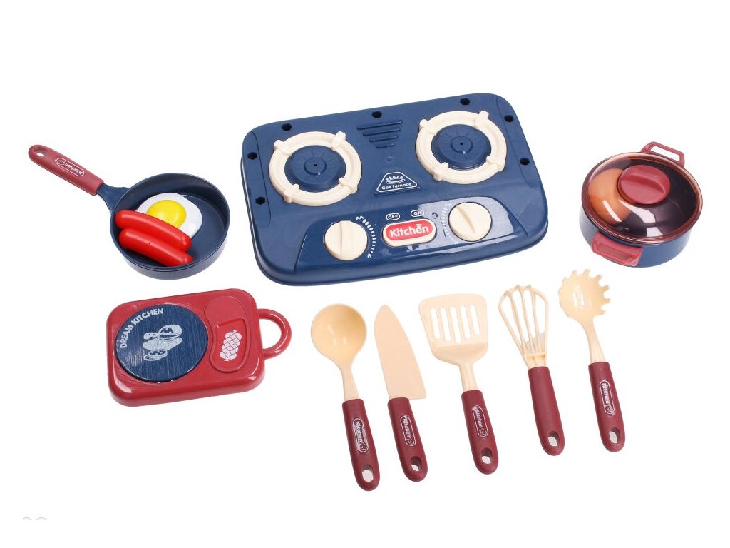 Kuchyňský set. Plastové nádobí s vařičem a potravinami. S tímto setem můžeš hned uvařit rodičům snídani či oběd.